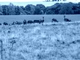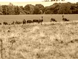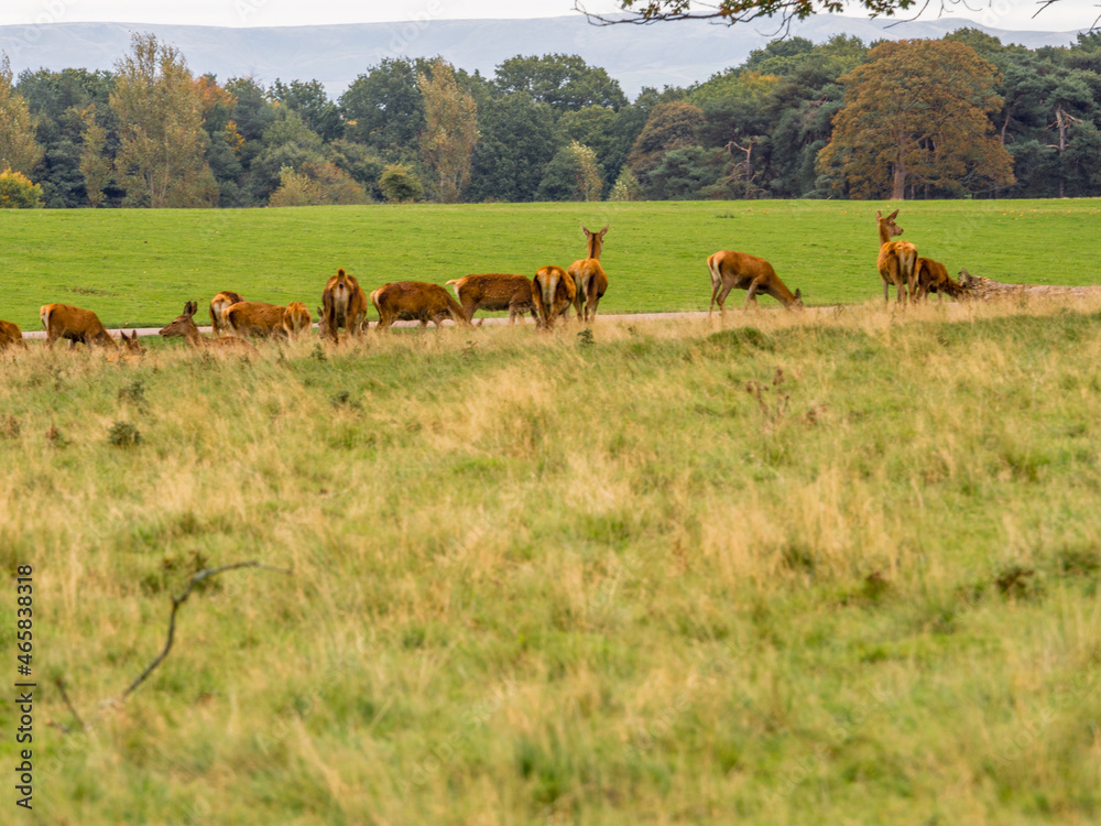 Group of female deer gathered during the rutting season at Tatton Park, Knutsford, Cheshire, UK