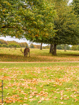 Roe deer stag during the rutting season at Tatton Park, Knutsford, Cheshire, UK