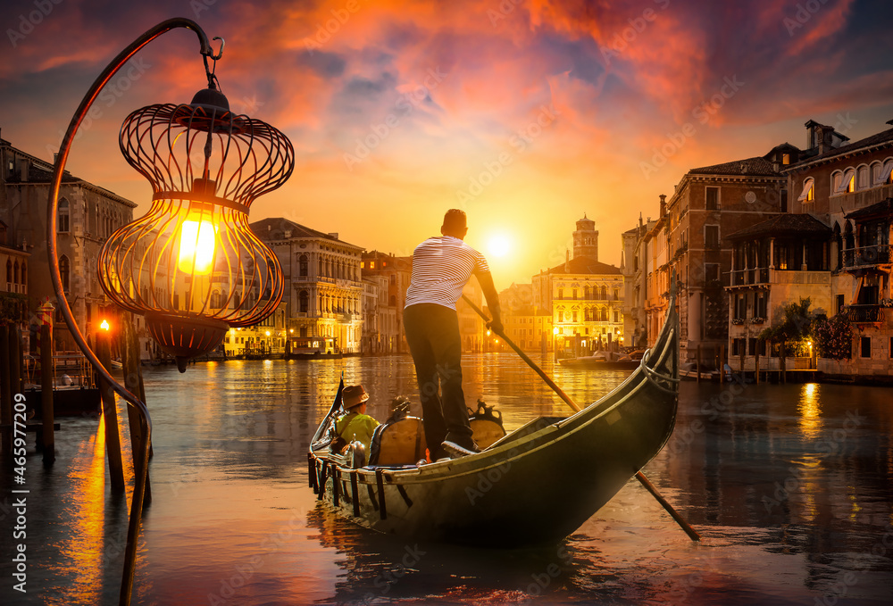 Gondolier at sunset