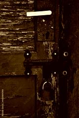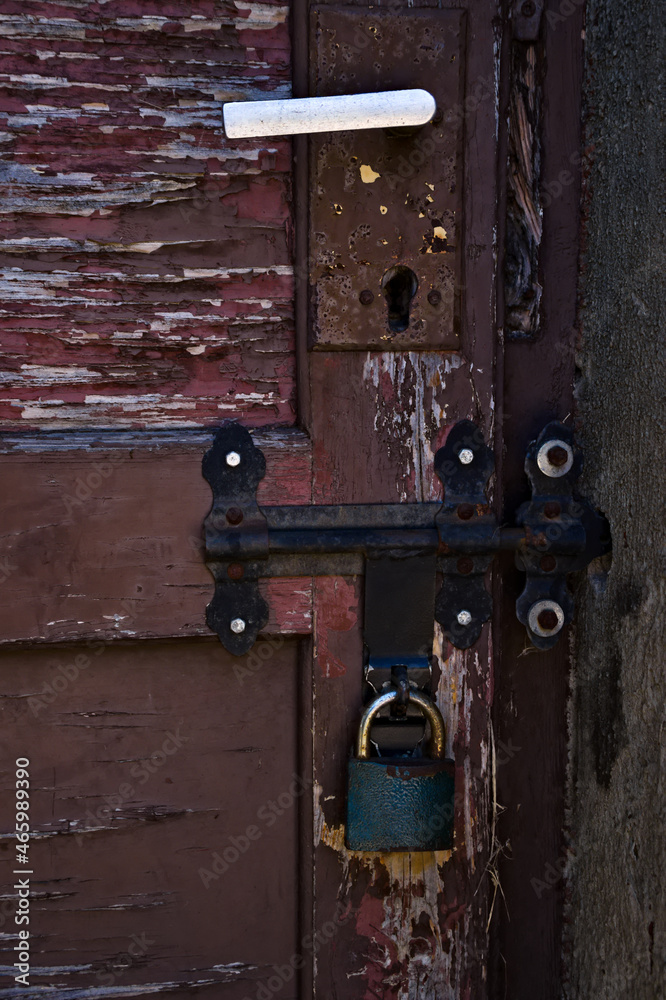 Stare drzwi zamknięte . Zasuwka i kłódka . Old door closed. Bolt and padlock.