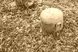 The head of the fire hydrant was covered with frost in the early autumn morning