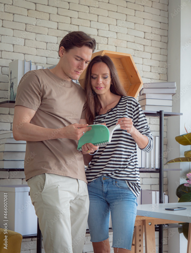 Young men and women, colleagues or white caucasian couples. Home office concept or work from home with modern business or during covid detention. Work from home or consult