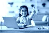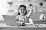 Little Arab Girl Showing Thumb Up While Study With Laptop At Home