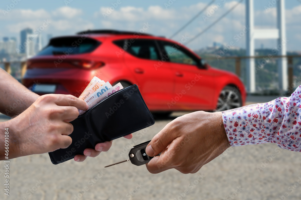 human hand paying cash, selective focus.