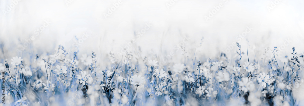 Beautiful morning in the meadow soft flowers background