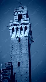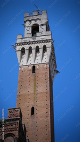 Bell tower of the Palazzo Pubblico, at the Piazzo del Campo, Siena, Italy.