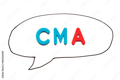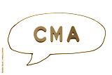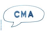 Alphabet letter with word CMA in black line hand drawing as bubble speech on white board background