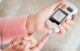 Close up woman hands checking blood sugar level by glucose meter for diabetes tester using as medicine, glycemia, healthcare and medical concept.