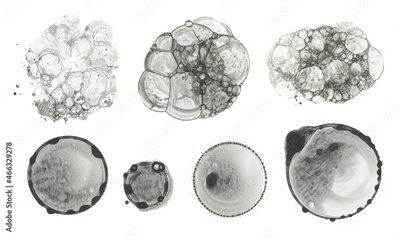 Watercolor bubble blot drop splash. Abstract texture black color stain on white background.