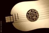 Renaissance guitar of the 16th century. Close-up details