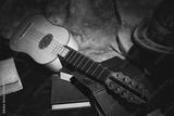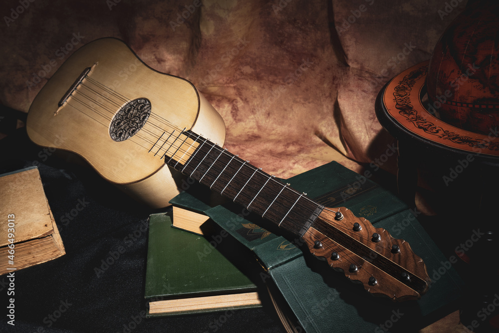 Musical still life in the Renaissance style with renaissance guitar