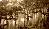 autumn forest on misty morning