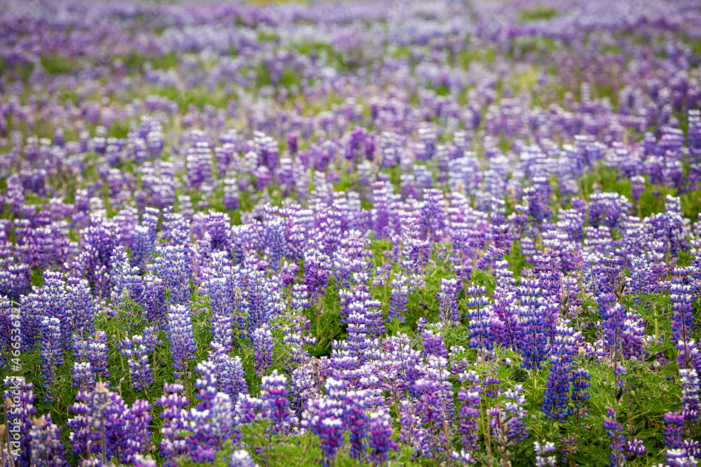 There are many beautiful purple lupins in the fields of Iceland.