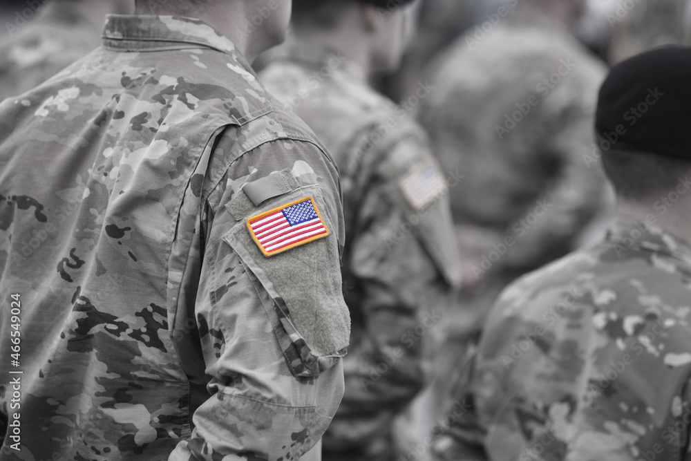 Veterans Day. US soldiers. US army. USA patch flag on the US military uniform. United States Armed Forces.