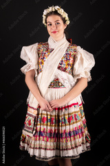 Young beautiful slovak woman in traditional dress. Slovak folklore