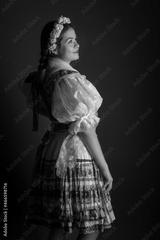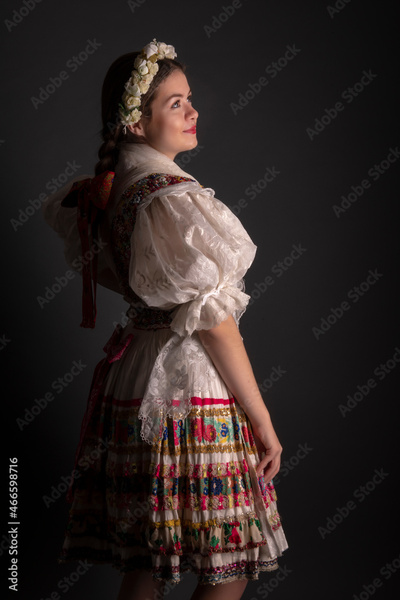 Young beautiful slovak woman in traditional dress. Slovak folklore