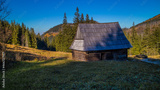 Szałasy pasterskie na tatrzańskich polanach jesienią.