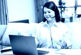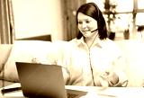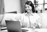businesswoman using laptop talk to colleagues in video call while smart working from home at living room. working at home remotely. woman entrepreneur works from home advising client videoconference