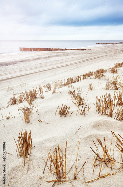 Dunes at Baltic Sea beach seen in Dziwnowek, selective focus, Poland.