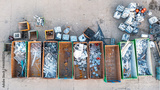 Containers from a height with different types of metal, Sorting for remelting metal products