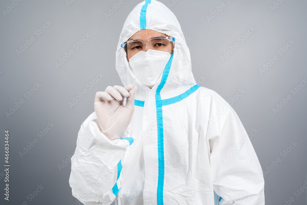 doctor in protective suit PPE holding Coronavirus(COVID-19) Nasal swab laboratory test