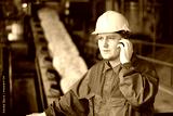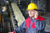 Industrial worker talking on cell phone