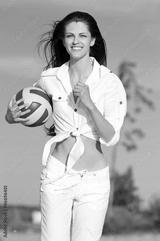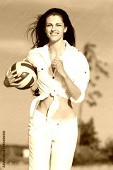 Woman playing volleyball on beach