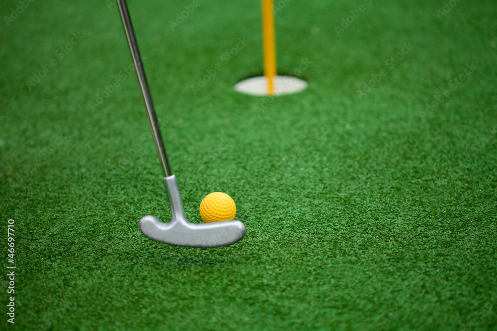 golf club, ball and hole