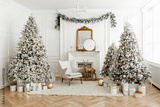Beautiful Christmas tree in a decorated bright living room. Festive New Year's interior.