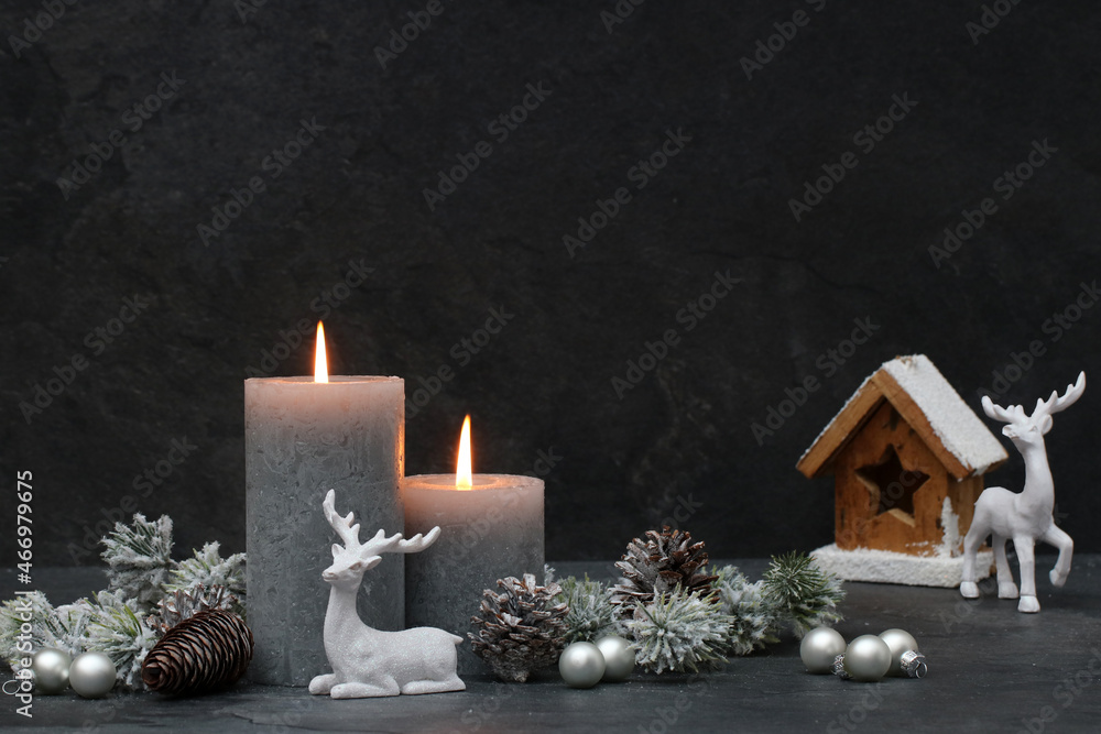 Weihnachtshintergrund: Kerzen mit Weihnachtschmuck.