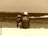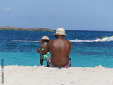 Black Man and His Baby Girl on a Tropical Caribbean Beach in The Bahamas (Black Family Travelers on Vacation, Father and Daughter) - Atlantis Resort, Paradise Island