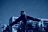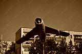 Stary radzieckiej produkcji myśliwiec . Eksponat osiedlowy . Old Soviet-made fighter. Housing estate exhibit.