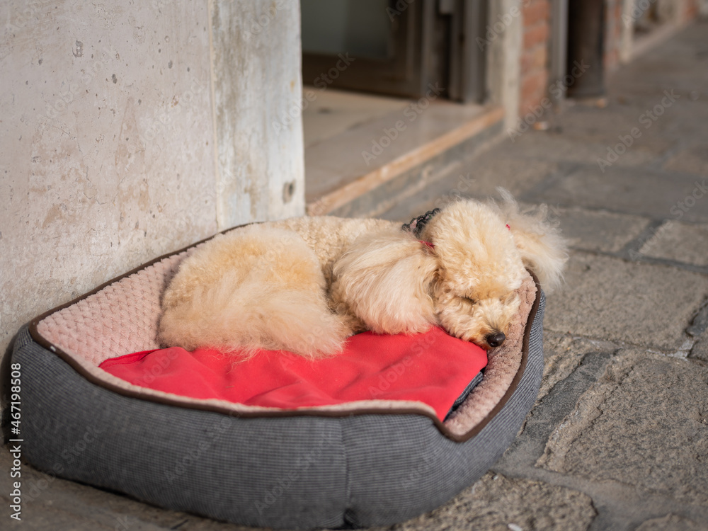 Cute little dog lying in its bed