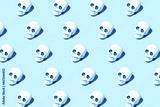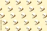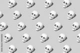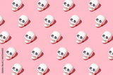 pattern from human skulls. Trending image on a pink background for the holiday Halloween
