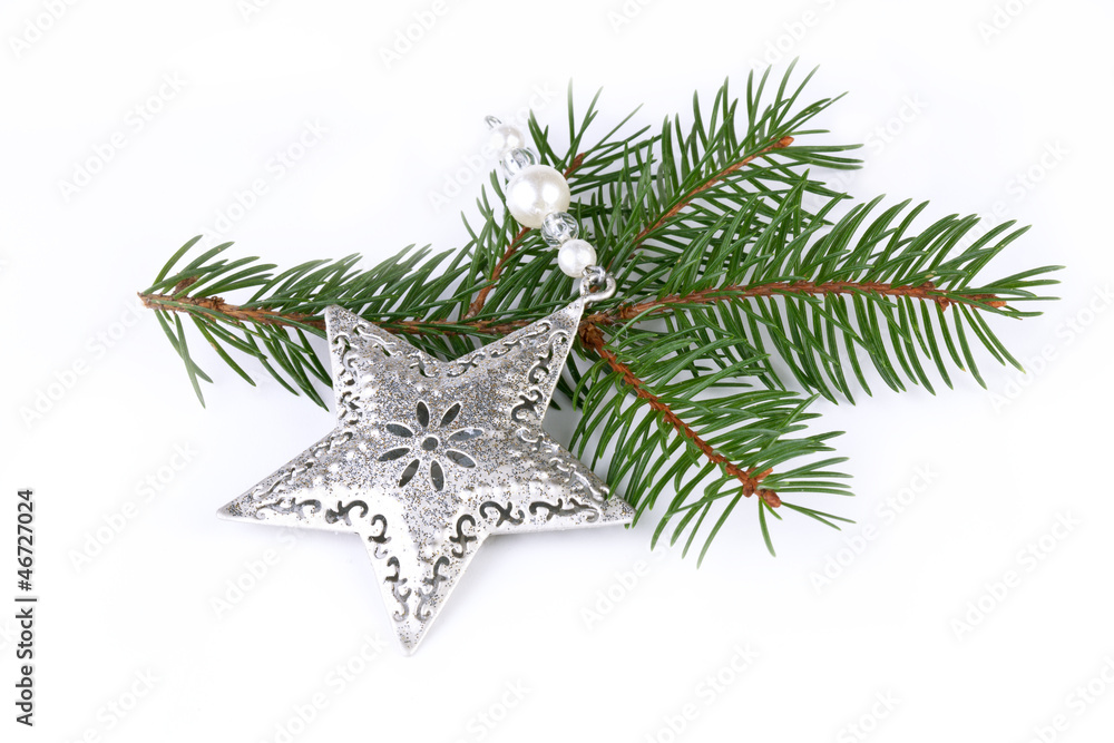 christmas star with fir branch on white backgound