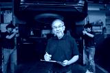 Mechanic changing engine, service car workshop automobile. professional man shop maintenance