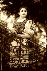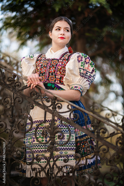 Young beautiful slovak woman in traditional dress. Slovak folklore