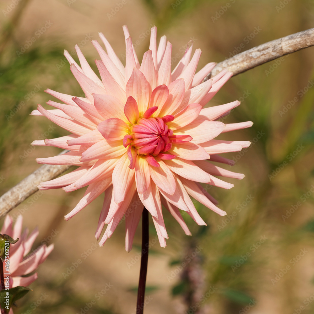 Kaktus-Dahlie lachsfarben oder hirschgeweih-dahlie mit Blütenblätter an der Längsachse nach außen gerollt wie eine Spinnenform