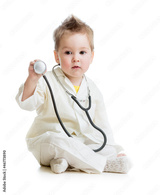 kid or child playing doctor with stethoscope isolated