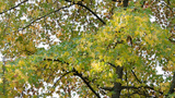 (Liquidambar styraciflua) Feuilles étoilées, palmatilobées et finement dentées de couleur automnale vert et jaune Copalme d'Amérique