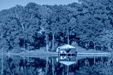 Mirror Image on Lake Cherokee of boat houses and trees. In East Henderson, Rusk County, Texas