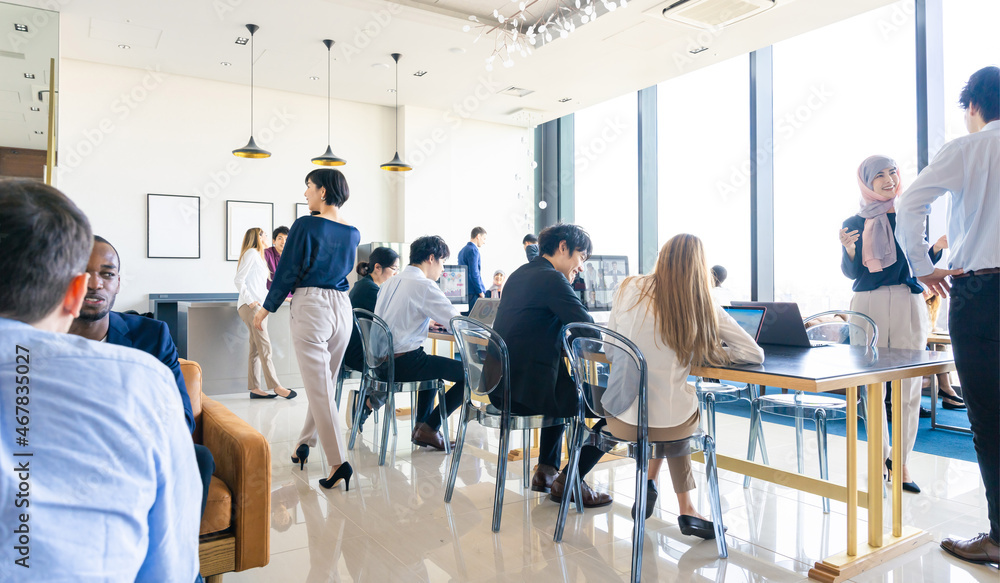 グローバルビジネスイメージ 多国籍なオフィスシーン 大勢の多人種の人々
