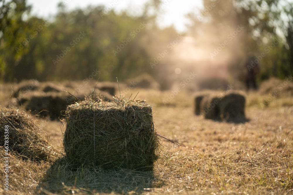 Close up of grass. Animal feed. compressed hay in the field. agriculture.
