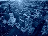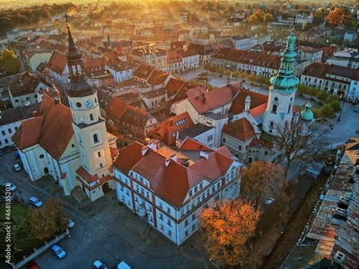 sunrise over the park and the palace in Pszczyna on an autumn morning