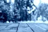 Beautiful winter scene. blurred background of snowy christmas nature background, Wood table top on shiny bokeh. For product display Christmas time mock up .