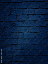 close up shot at the surface of dark blue bumpy brick pattern wall with stamped of dog footprint. artificial stone brick wall texture for loft, industrial concept design. high defination image.