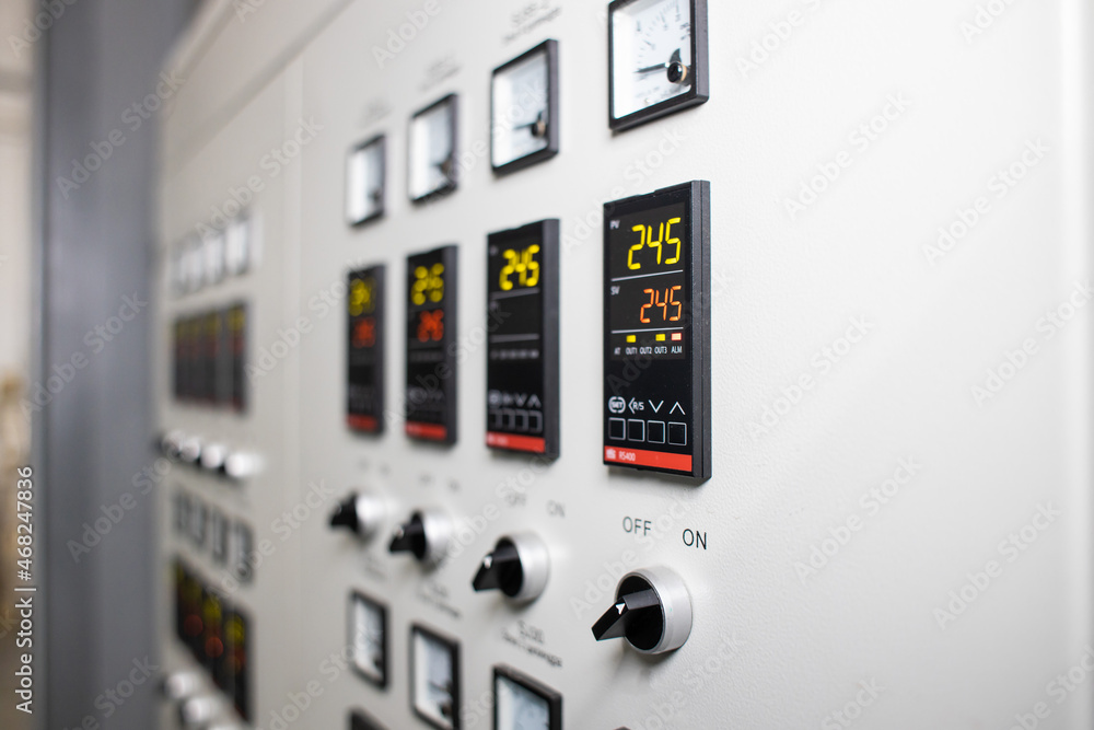 Many button of the machine in the factory