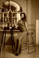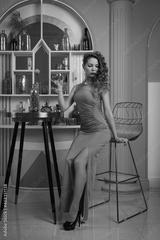 Beautiful young woman in retro style at vintage interior..