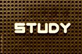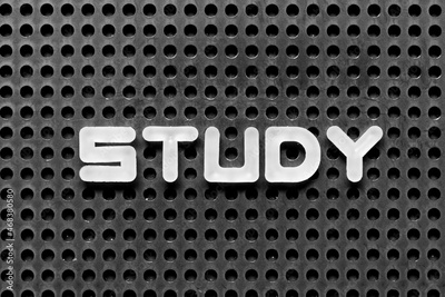 White alphabet letter in word study on black pegboard background