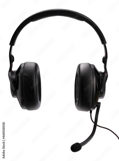 Black Gaming headset isolated on white background With clipping path, Computer headphones with microphone E sport Game device.